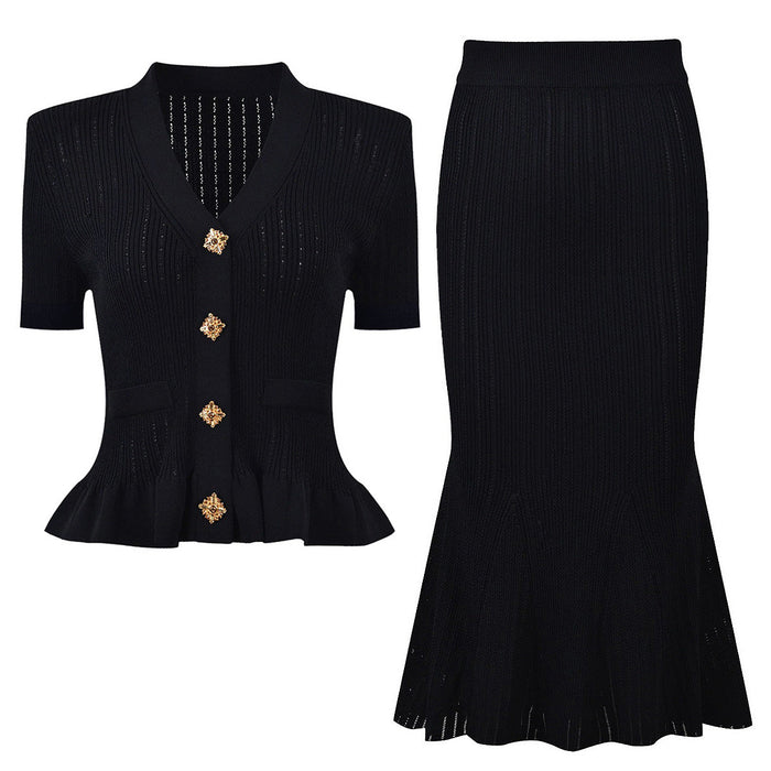 Daphne Knit Cardigan and Mini Skirt Set with Gold Buttons