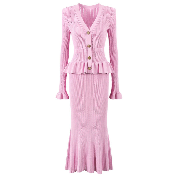 Lacey Ruffle Trim Knit Cardigan and Skirt Set