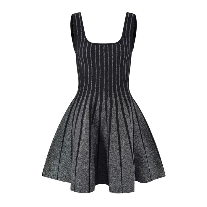 Lauren Black Knit Mini Dress with Silver Striped Flared Skirt