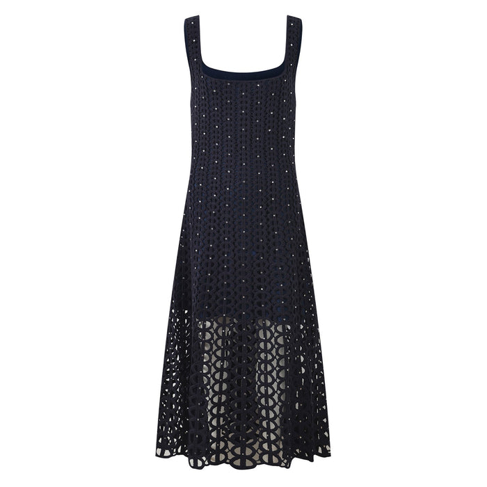 Daphne Knit Mermaid Midi Dress with Crystal Buttons