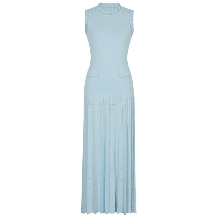Molly Sleeveless Pearl Round Neck Knit Midi Dress