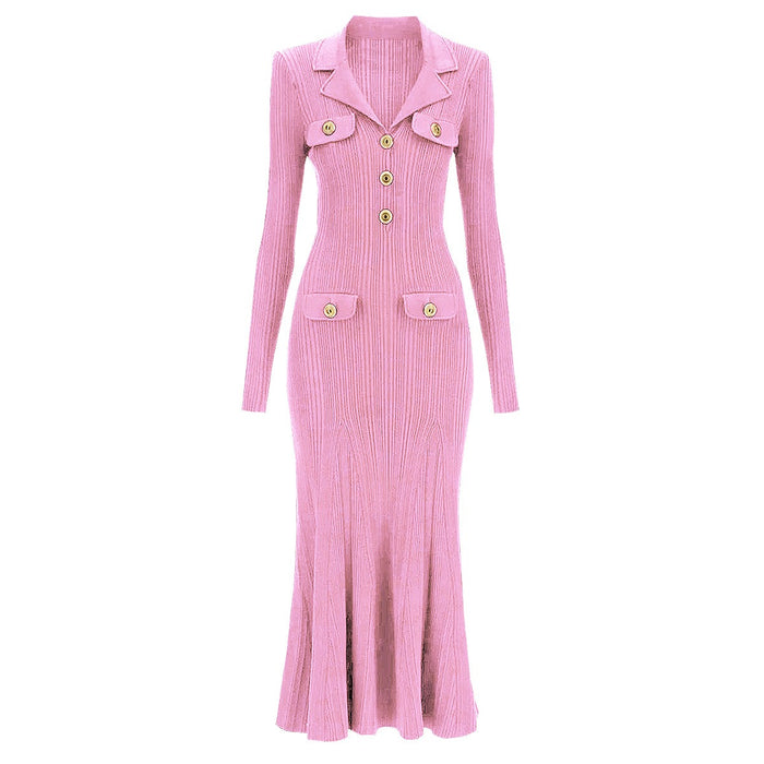 Lola V-Neck Knit Midi Dress with Flared Hem