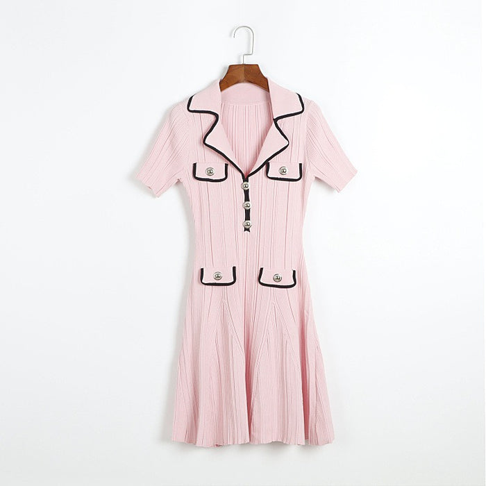 Ottilia Pink Tweed Dress with Crystal Buttons